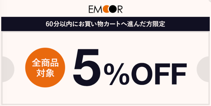 公式サイト見ていると、60分以内全品5%OFFになるポップアップが現れることがあります。